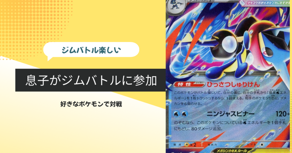 息子がジムバトルに初参加し始めて今ではメガゲッコウガexのデッキを愛用して、